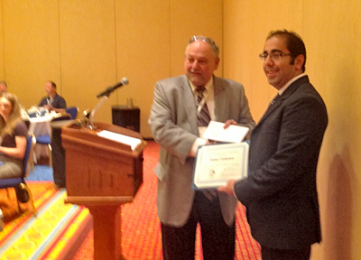 Hamed Zamenian receiving his scholarship from Art Silber.