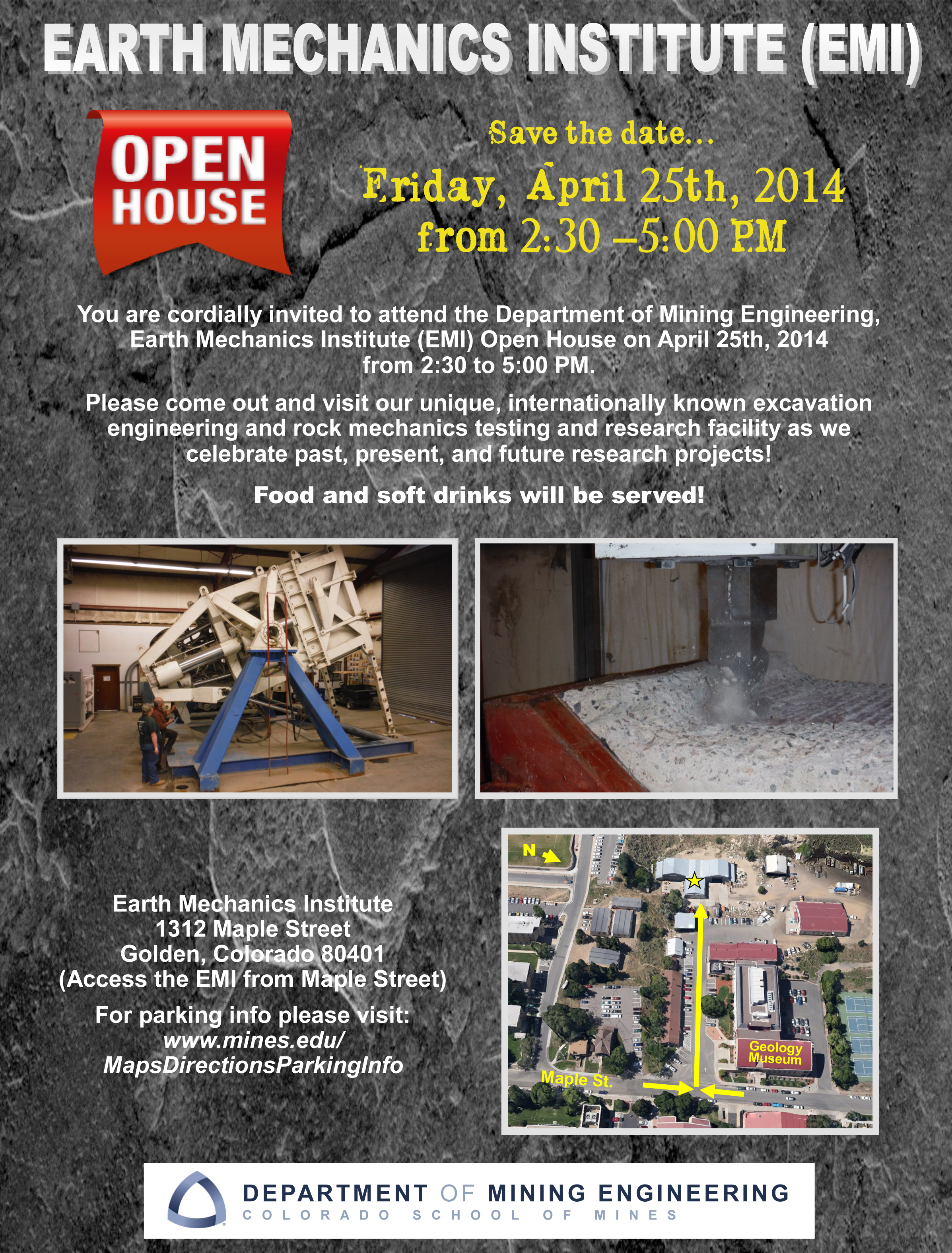 Friday, April 25, 2014 from 2:30 pm-5:00 pm at the Excavation Engineering and Earth Mechanics Institute (EMI).