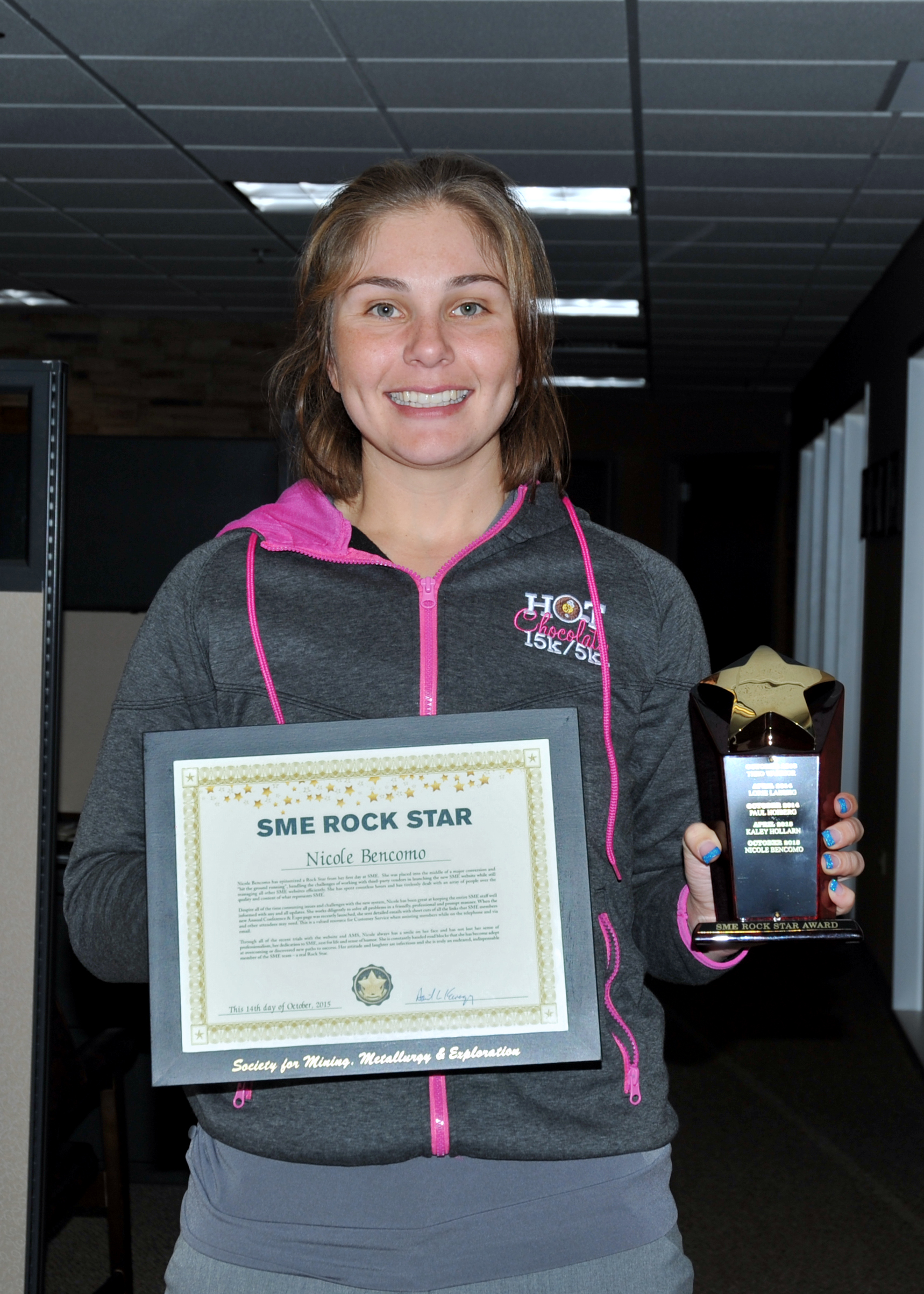 Every six months the SME staff nominate a hard-working staff person that has gone above & beyond expectations to serve our society & the membership with excellence. This season's Rock Star is Nicole our website content administrator! Nicole has epitomized a Rock Star from her first day at SME. She was placed into the middle of a major conversion and “hit the ground running”, handling the challenges of working with third-party vendors in launching the new SME website while still managing all other SME websites efficiently. She has spent countless hours over the quality and content of what represents SME.