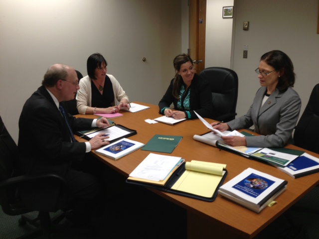 Jessica and Dave Kanagy meeting in Silver Spring, MD with Margaret O'Gorman, president, and Josiane Bonneau, director of field programs of the Wildlife Habitat Council.