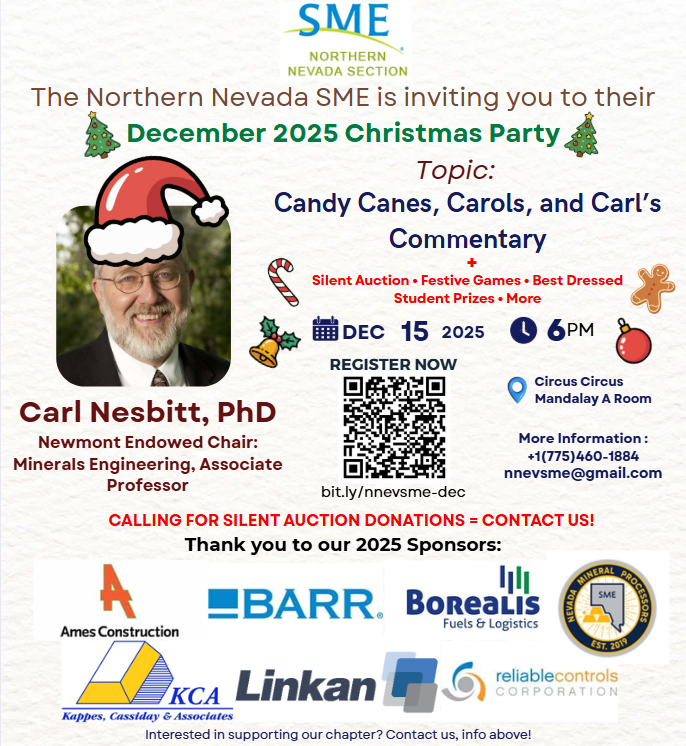 📢 Next Monday, join the Northern Nevada SME Chapter for our Christmas Party @ 6PM.