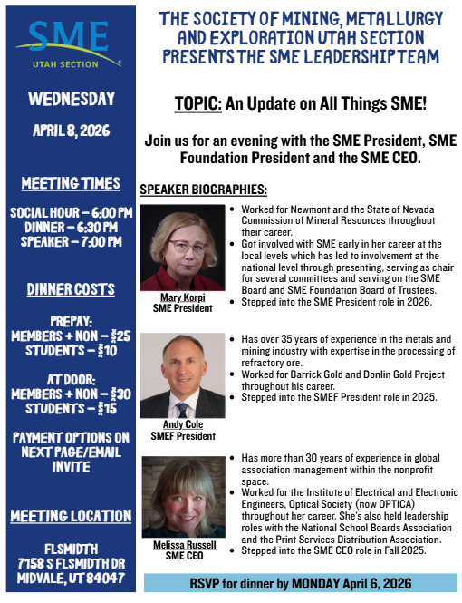The SME leadership team will visit on Wednesday, April 8th. It's always a fun and engaging evening. Hope you can join us.